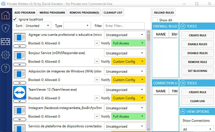 Dans le même temps, en ce qui concerne l’ interface de pare – feu incluse dans ce même outil, elle s’attache à nous montrer le blocage d’accès aux programmes par défaut, et affiche des avertissements à chaque fois qu’une application non identifiée tente d’établir des connexions sortantes. En même temps, c’est quelque chose que nous pouvons également personnaliser et ajuster en fonction de nos besoins à tout moment, puisque toutes les règles, programmes existants et leurs droits d’accès sont affichés dans la fonction d’administration du pare – feu .