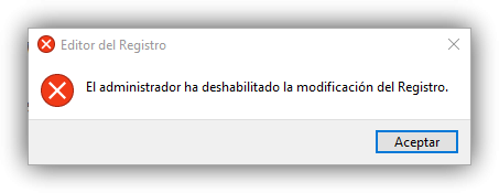 Désormais, lorsque nous essaierons d’ouvrir l’éditeur de registre Windows, nous pourrons voir comment apparaît un message comme celui-ci qui nous en empêche, empêchant ainsi les utilisateurs de modifier le registre du système d’exploitation sans autorisation.
