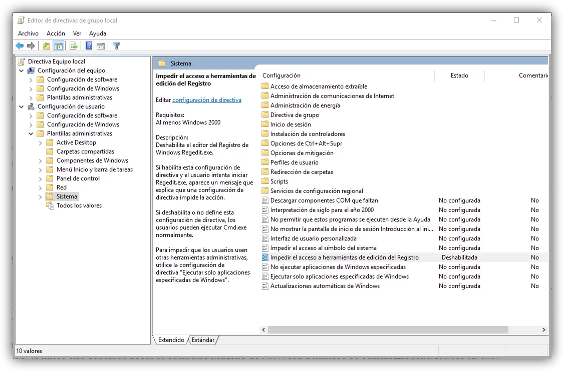 Le moyen le plus rapide et le plus simple de bloquer l’accès au registre Windows est à partir du registre lui-même (pardonnez la redondance). De plus, ce changement n’est valable que pour l’utilisateur qui le fait, donc si nous avons deux utilisateurs, par exemple, nous devons répéter le processus pour tous, ou pour ceux que nous voulons bloquer.