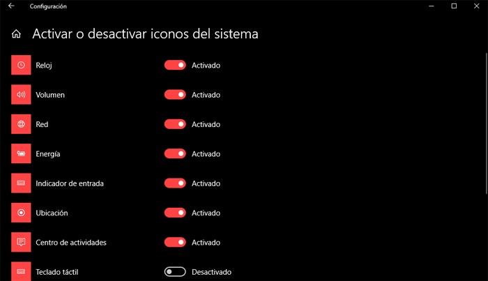 Eh bien, comme on pouvait s’y attendre, alors nous n’aurons plus qu’à activer, ou non, les sélecteurs correspondant à chacune des icônes susmentionnées afin qu’ils restent visibles sur la barre des tâches du système ou disparaissent, aussi simple que cela.