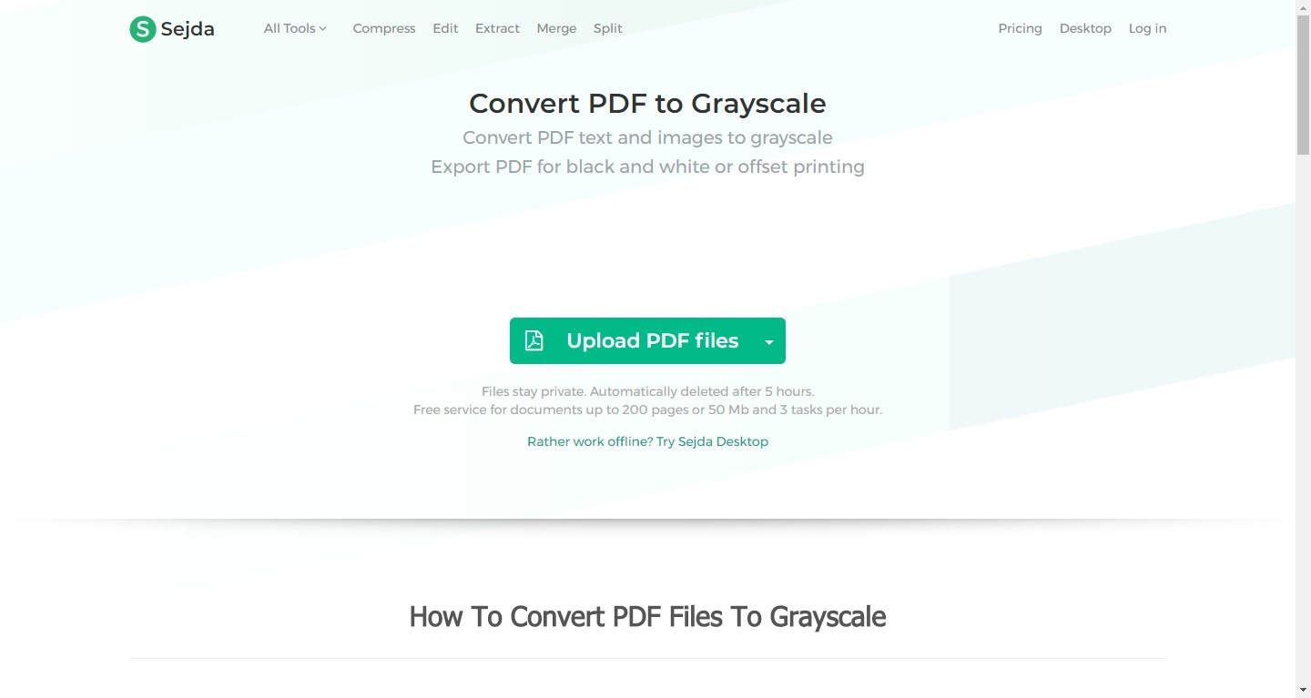 Si nous voulons aller doucement, nous pouvons toujours nous tourner vers Sejda PDF . Cette application se compose d’une boîte à outils complète pour effectuer toutes sortes de modifications aux fichiers PDF, y compris le changement de couleur en niveaux de gris. Cet outil spécifique, en outre, n’a pas besoin de télécharger et d’installer le programme principal pour fonctionner, mais nous pouvons l’utiliser directement depuis notre navigateur Web en accédant au lien suivant .