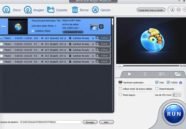 Sûrement à l’occasion, nous avons constaté que lors de l’utilisation d’un DVD que nous avons depuis longtemps, notre ordinateur ou lecteur de DVD n’est pas capable de le reconnaître ou nous trouvons certaines erreurs de lecture. Eh bien, avec cet outil, nous pourrons convertir ces DVD en vidéo et résoudre ces problèmes. La même chose se produit avec les DVD qui ont un verrou de sécurité ou régional, car avec WinX DVD Ripper Platinum, nous pourrons convertir ces DVD en une vidéo de manière simple et pouvoir la reproduire sans aucun problème.