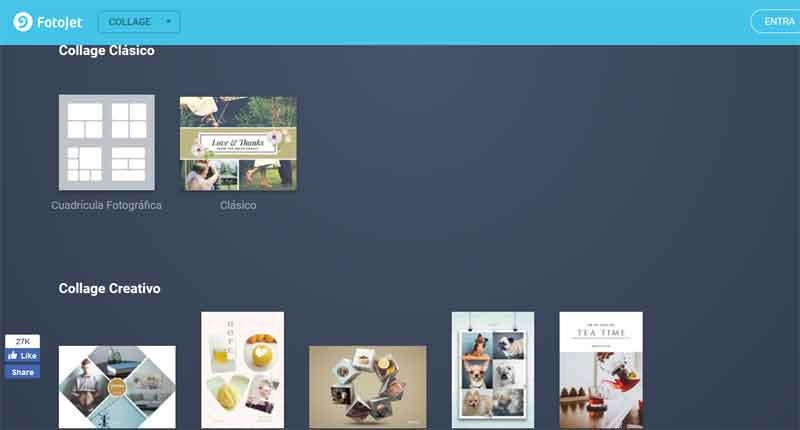 Pour nous donner une idée de ce que nous proposons dans ces lignes, nous pouvons par exemple jeter un œil à la proposition de ce type appelée Fotojet , une application qui nous offre une série de modèles supplémentaires plus avancés qui pourraient être considérés comme du collage classique .