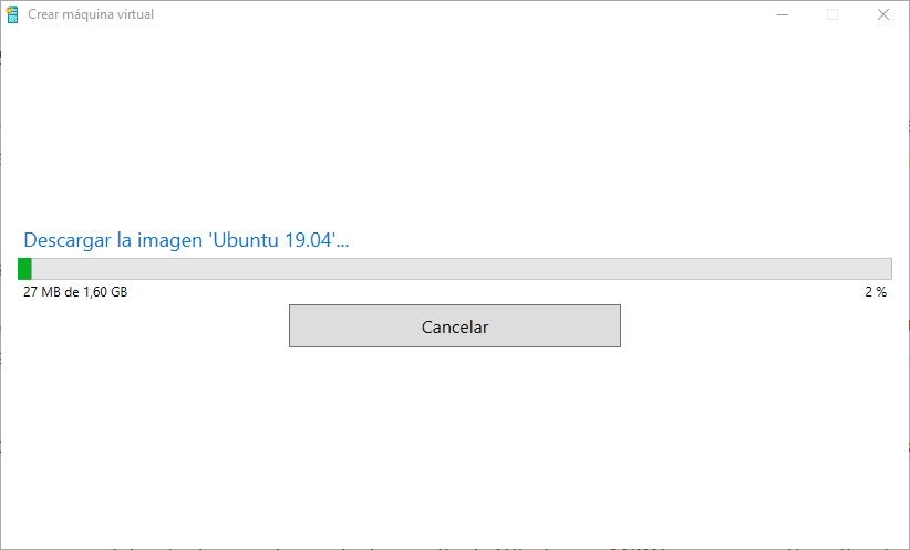 Nous sélectionnons « Ubuntu 19.04 » et cliquons sur « Créer une machine virtuelle » pour commencer la création de cette machine dans l’environnement Hyper-V. Windows se chargera de télécharger Ubuntu et de le convertir automatiquement en machine virtuelle. Nous n’aurons rien à faire, ni à configurer la machine, ni à effectuer un processus d’installation ou à installer un package après l’installation. Tout.