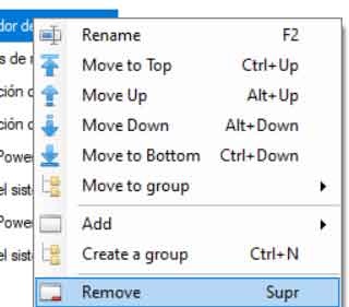 Il est également intéressant de savoir que l’ application dont nous parlons nous offre la possibilité de changer l’ordre des éléments exposés ici, de cette manière nous pouvons les placer par ordre de priorité, par type, ou par utilisation, pour quoi donc Nous sommes va seulement avoir à sélectionner un élément et utiliser les icônes en forme de flèche à droite de la fenêtre pour le déplacer dans le menu .