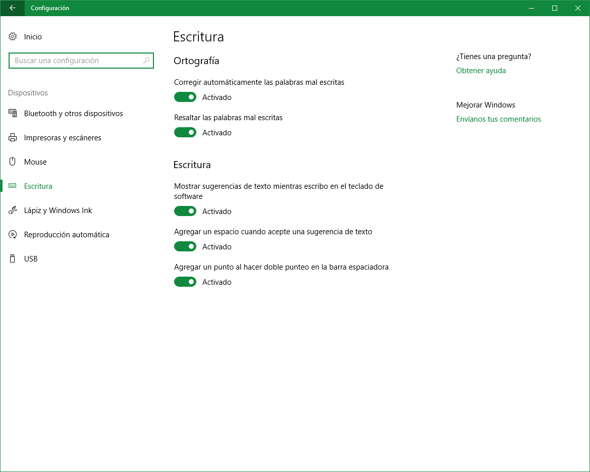 En plus des options ci-dessus, nous pouvons également profiter de cette section des paramètres de Windows 10 pour configurer d’autres options liées à l’écriture, options qui, de plus, nous seront très familières si nous utilisons souvent des appareils mobiles.