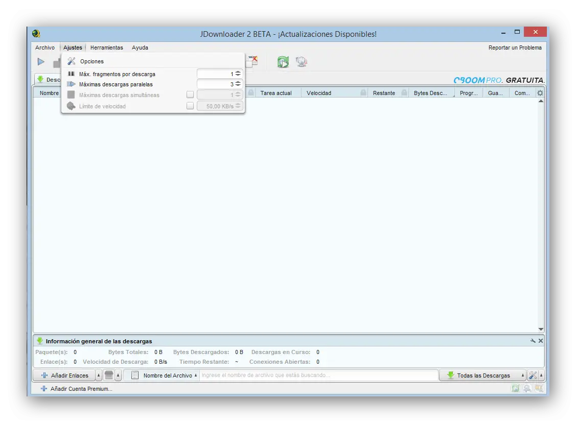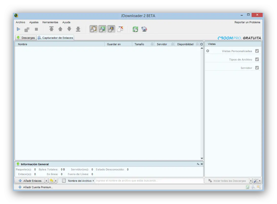 Une fois l’installation terminée, nous aurons notre JDownloader 2.0 prêt à fonctionner.