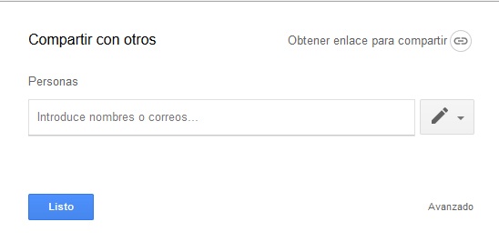 Une fois que nous avons attribué un nom au document que nous voulons partager avec d’autres, dans la nouvelle fenêtre qui apparaît, nous cliquons sur l’ option appelée «Obtenir le lien pour partager» située dans le coin droit. Eh bien, alors le lien personnalisé qui nous est fourni et qui donne accès au document en question, apparaît à l’écran, donc nous pouvons maintenant le copier dans le presse-papiers du système .