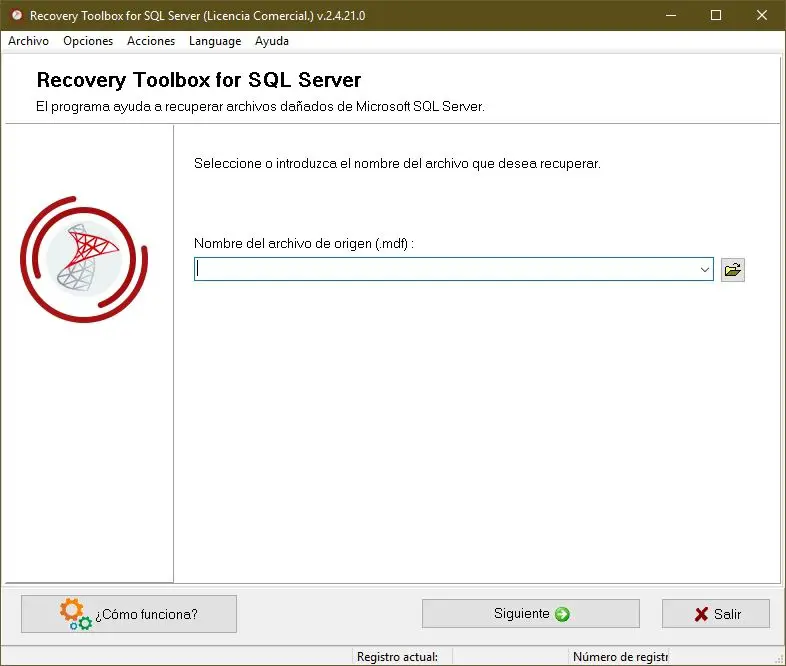Si nous avons une base de données SQL endommagée sur notre ordinateur ou notre serveur, la première chose à faire est de télécharger et d’installer cet outil à partir de son site Web principal. Le téléchargement est gratuit, et nous pourrons également simuler une réparation pour voir l’aperçu avant de payer la licence, donc si pour une raison quelconque vous n’êtes pas en mesure de récupérer les données, au moins nous n’aurons pas payé l’application inutilement .