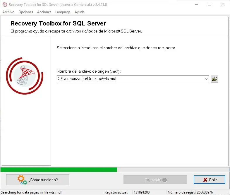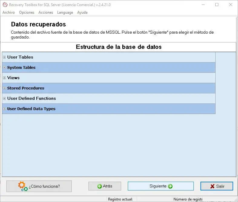 Cet outil est compatible avec les fichiers .mdf et .ndf et nous permet, en plus de voir un aperçu des données récupérées, de sauvegarder à nouveau le fichier dans le même format déjà réparé.