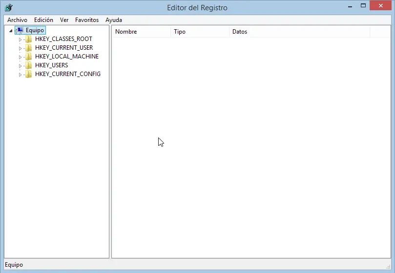 Pour effectuer cette sauvegarde, la première chose à faire est d’ouvrir l’éditeur de registre Windows. Pour cela, nous allons exécuter » regedit » à partir de la fenêtre «exécuter» de notre système d’exploitation pour voir une fenêtre similaire à la suivante.