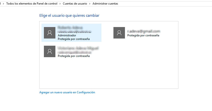 Depuis le panneau de contrôle, nous pouvons également savoir si nous allons à la section des comptes d’utilisateurs dans le panneau de contrôle et à partir de là, nous accédons à l’option Gérer les comptes . Là, nous pouvons trouver tous les comptes du système où nous pouvons vérifier si le nôtre a des privilèges spéciaux. Pour ce faire, le mot Administrateur doit apparaître juste en dessous du compte.