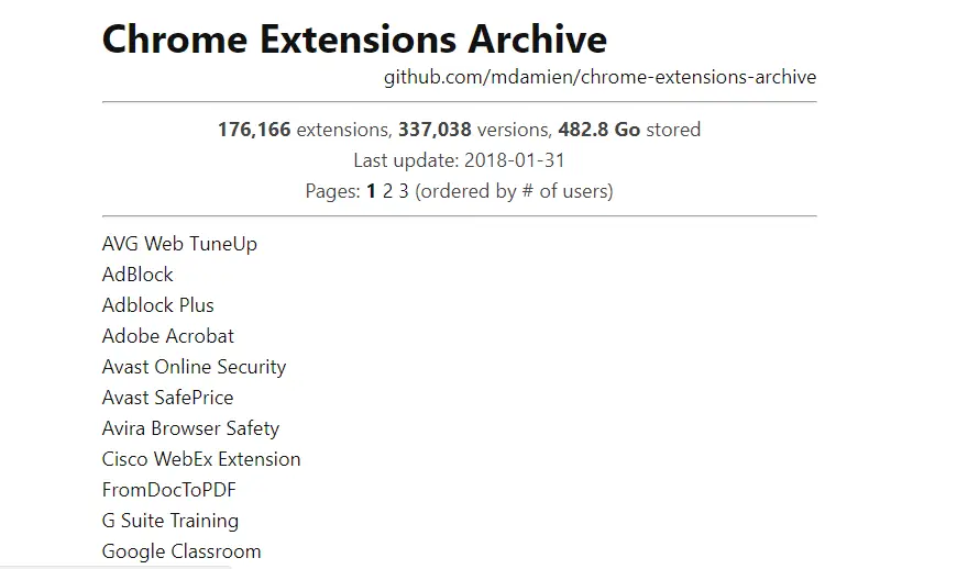 Eh bien, il existe un site Web gratuit qui nous offre la possibilité de télécharger n’importe quelle version précédente des extensions Google Chrome. Nous y trouverons pour chaque extension, une liste avec toutes ses versions afin que nous puissions choisir celle que nous voulons pour notre navigateur. Le site en question s’appelle Chrome Extensions Archive et compte actuellement plus de 176 000 extensions et plus de 337 000 versions . Mieux encore, ces chiffres augmentent chaque jour et de plus en plus d’extensions et de versions sont disponibles.