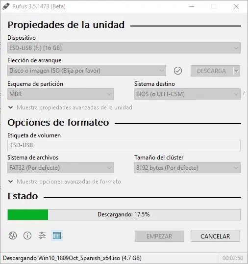 Nous attendrons simplement la fin du téléchargement ISO de Windows 10 et, une fois que nous l’avons sur notre ordinateur, la seule chose que nous devons faire est de créer la clé USB d’installation de Windows 10 avec cet outil.