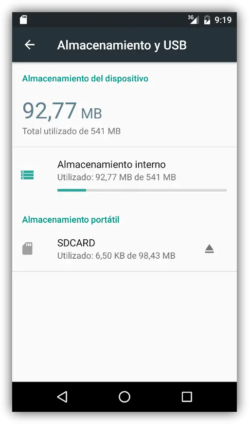 Cet explorateur de fichiers n’a pas d’icône dans le lanceur comme nous en avons l’habitude, mais doit être accessible à partir du menu des paramètres système. Pour ce faire, nous ouvrons le menu Paramètres> Stockage et USB et nous verrons un écran similaire au suivant, où nous verrons un résumé de l’utilisation de l’espace de stockage de notre appareil.