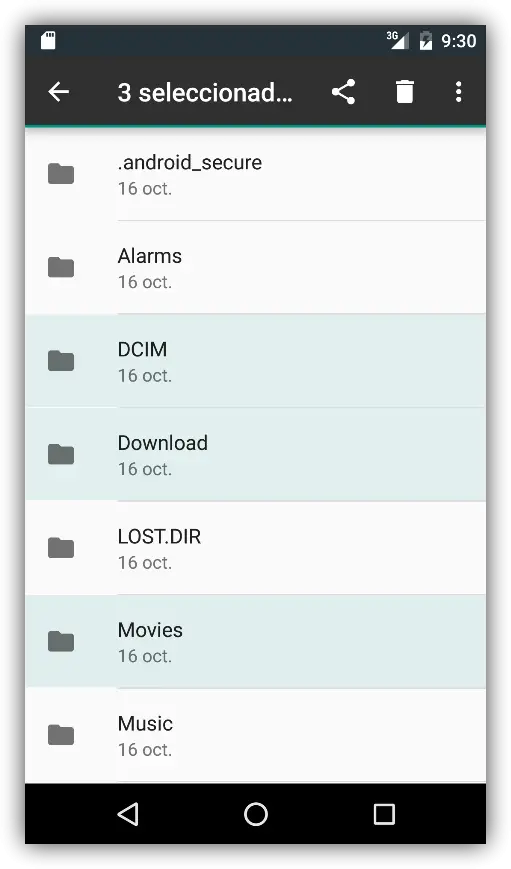Nous pouvons nous déplacer entre tous les dossiers et tous les fichiers de la même manière que n’importe quelle autre application. Nous pouvons également sélectionner un ou plusieurs fichiers en maintenant notre doigt appuyé sur l’un d’eux pendant quelques secondes jusqu’à ce qu’il soit sélectionné et qu’il apparaisse coloré.