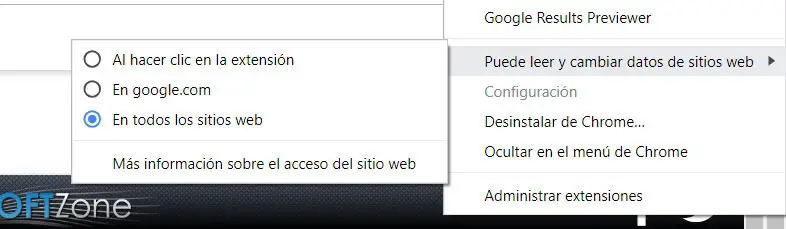 C’est pourquoi, dans ces lignes, nous allons faire référence à cette nouvelle version, donc une fois que nous l’avons téléchargée et installée sur notre ordinateur , l’extension elle-même demandera un accès pour lire et modifier les données sur les sites Web , bien qu’en même temps nous doit garder à l’esprit que ce plugin ne fonctionne qu’avec «google.com» et non dans les domaines locaux de Google.