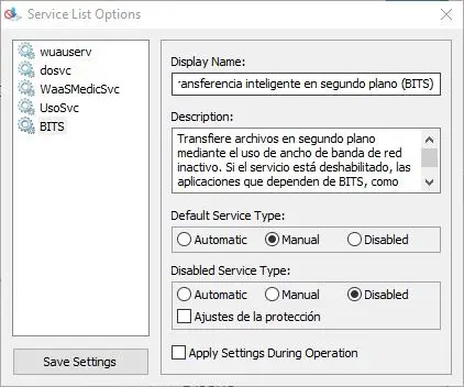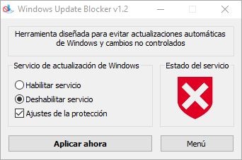Para bloquear todas estas actualizaciones, lo único que debemos hacer es seleccionar la opción «Deshabilitar servicio» junto con la casilla «Ajustes de la protección» para que el programa se encargue de deshabilitar todos los servicios relacionados con Windows Update, bloqueando todas las actualizaciones en nuestro Windows.