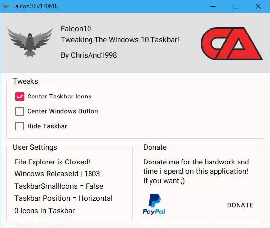 Concretamente, debemos instalar previamente AutoIt, que es un lenguaje gratuito de scripting similar al BASIC y que está diseñado para automatizar la GUI de Windows y el scripting en general. Una vez instalado, lo siguiente que tenemos que hacer para poder centrar los iconos de la barra en Windows 10 es descargar e instalar Falcon 10.