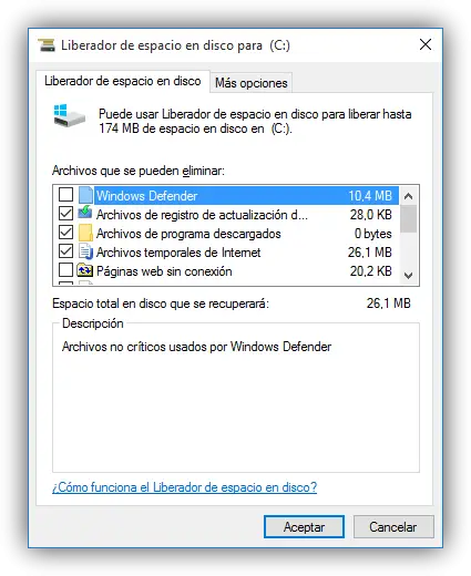 Seleccionamos todas aquellas que queremos eliminar y pulsamos sobre «Aceptar«. Nuestro sistema operativo automáticamente detectará y eliminará todos estos archivos (en ocasiones pueden suponer varios gigas de espacio) y ras varios segundos (o minutos) el proceso finalizará y ya tendremos nuestro espacio adicional liberado y disponible.