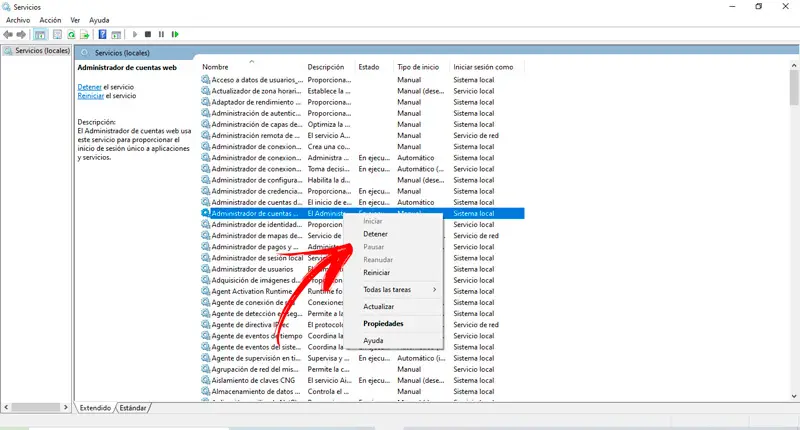 Si vous cherchez à réduire la consommation de RAM et de processeur, vous devez désactiver les services Windows 8 qui ne sont pas nécessaires. Pour cela , vous devrez utiliser le Run outil , en appuyant simultanément sur le Win + R combinaison de touches . Ensuite, vous devrez écrire SERVICES.MSC et vous verrez une liste avec tous les fichiers de service du système d’exploitation. Pour les arrêter, vous devrez faire un clic droit sur celui que vous avez choisi, puis sélectionner l’option Arrêter .