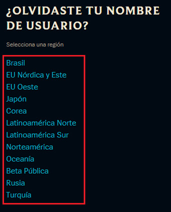- Tout d’abord, indiquez la région dans laquelle vous vous trouvez afin de récupérer votre compte LOL.