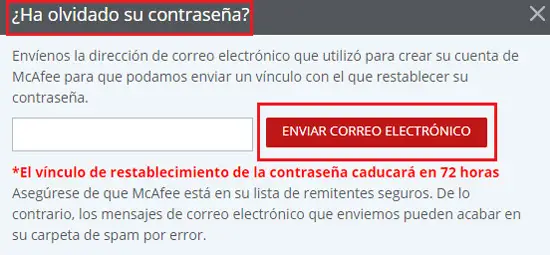 Si vous avez oublié votre mot de passe, vous ne pouvez pas le récupérer . Vous devez établir un nouveau mot de passe utilisateur dans McAfee Security et, pour cela, vous n’avez qu’à faire ce que nous allons vous expliquer dans les étapes suivantes: