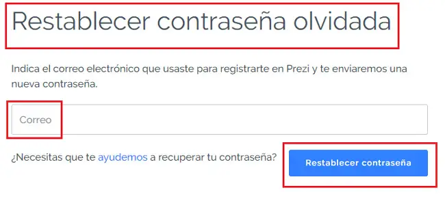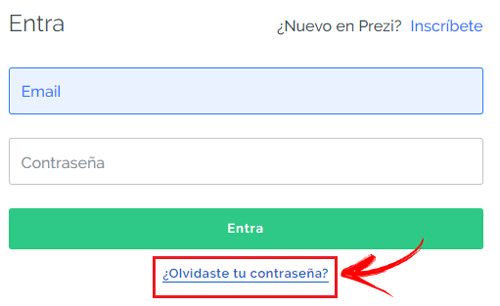 Si vous avez oublié votre mot de passe pour accéder, ce qui arrive fréquemment, nous allons vous expliquer comment récupérer le mot de passe de votre compte Prezi ou, plutôt, comment en restaurer un nouveau. Suivez ces étapes que nous vous laissons indiquées pour pouvoir entrer à nouveau: