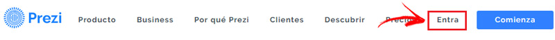 - Entrez, comme d’habitude, sur le site Web Prezi depuis votre PC avec l’URL: https://prezi.com ou l’application depuis votre téléphone. Dans les deux systèmes, il est possible de se connecter avec Facebook ou Google.