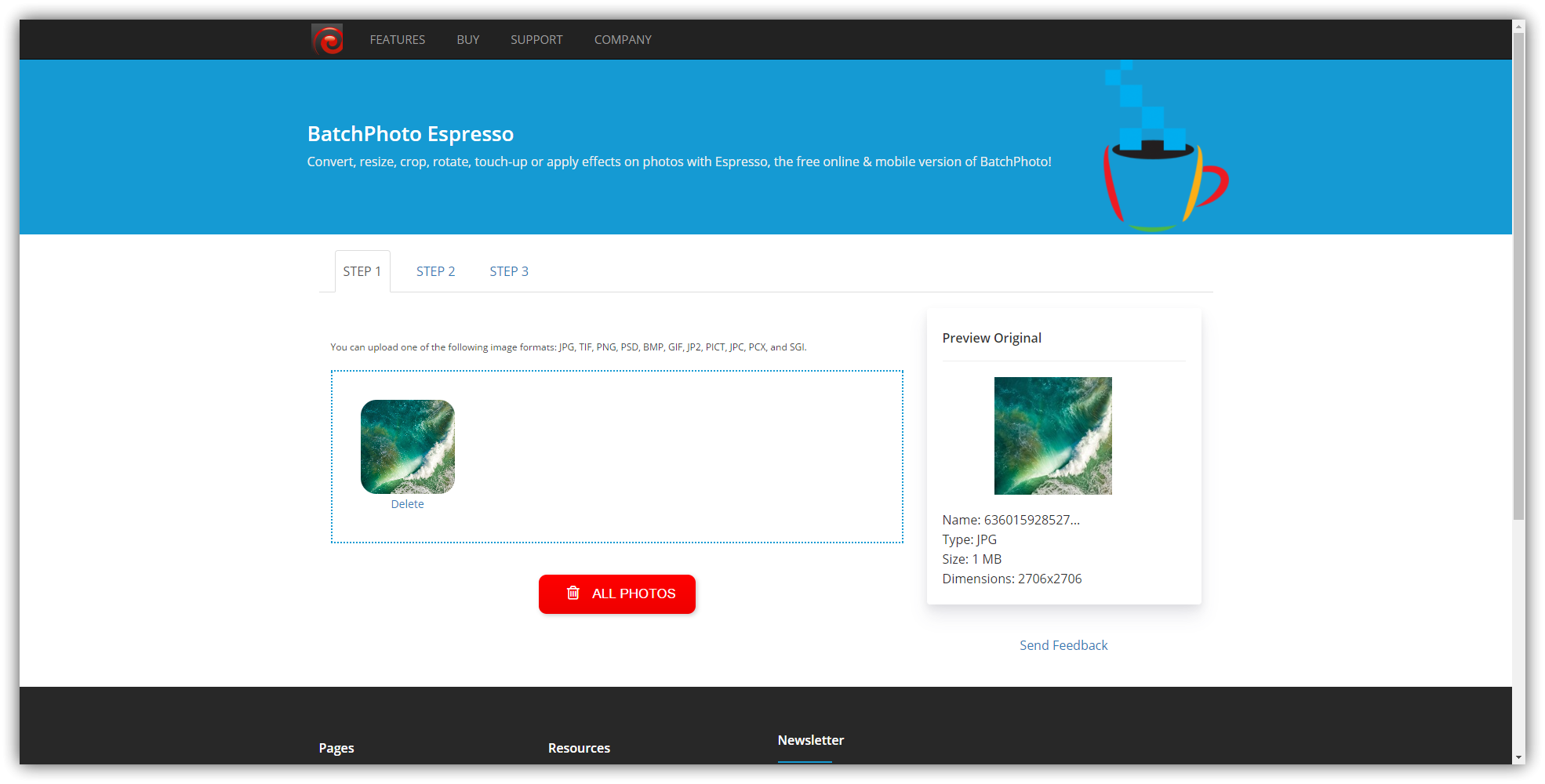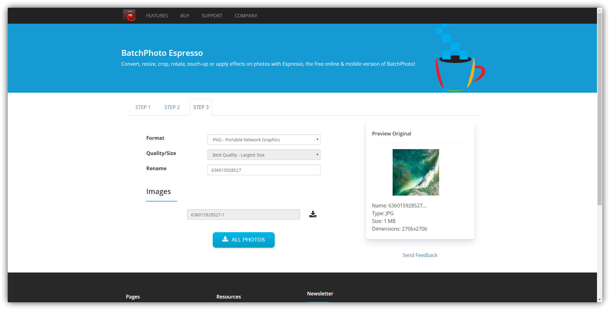 BatchPhoto Espresso est une nouvelle plateforme en ligne développée pour permettre aux utilisateurs de convertir facilement des images d’un format à un autre et, comme nous l’avons dit, sans perte de qualité. Bien que l’objectif principal de cet outil soit de nous permettre de convertir des images de PNG en JPG sans perte de qualité, il est en fait compatible avec d’autres formats graphiques, tels que TIF, PSD, BMP, GIF, JP2, PICT, JPC, PCX et SGI .