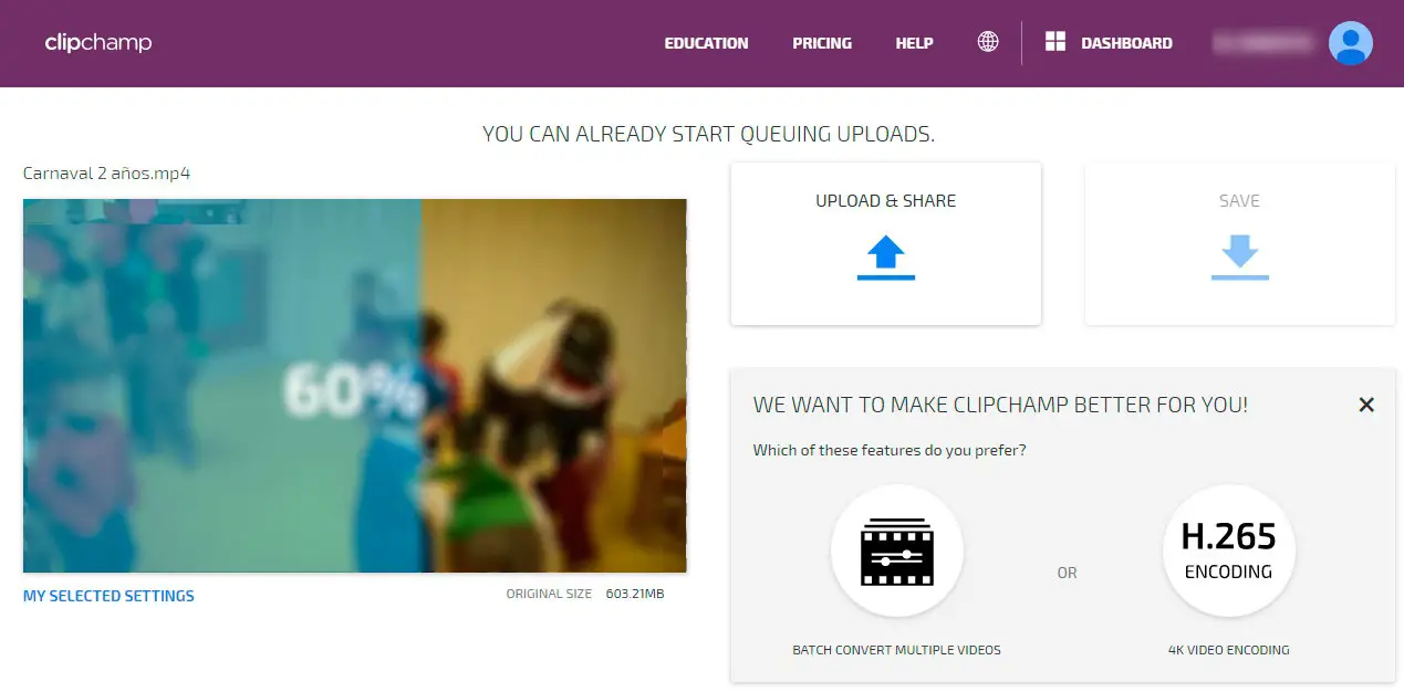 Le service en question s’appelle clipchamp et rien qu’en créant un compte gratuit, nous pourrons faire toutes ces choses sur nos vidéos. Il offre même la possibilité d’enregistrer des vidéos à partir de la webcam de l’ordinateur pour un traitement ultérieur. Pour commencer à utiliser clipchamp, il suffit d’ aller sur le site officiel , de sélectionner la vidéo que nous voulons convertir , éditer ou compresser et la télécharger sur clipchamp. Une fois que nous l’aurons là, nous pourrons d’ abord les modifier au cas où nous voudrions le couper, le faire pivoter ou faire des ajustements. C’est aussi le moment où si on veut changer la qualité ou la résolution, on peut le faire à partir des paramètres.