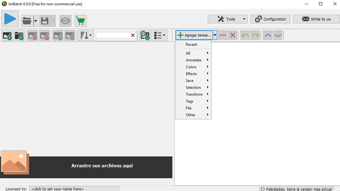 Il met également à notre disposition des fonctions telles que le redimensionnement , la modification de la luminosité et du contraste , ou nous pouvons ajouter un filigrane, tout cela pour finir par enregistrer l’image ou les images au format que nous indiquons au programme . De plus , les tâches assignées sont exécutées dans l’ ordre que nous indiquons à ImBatch, un ordre que nous pouvons modifier afin qu’elles soient traitées comme nous en avons besoin à tout moment.