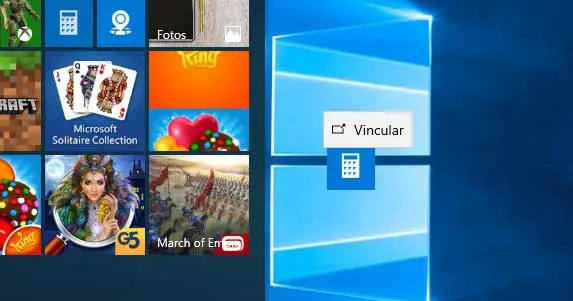 De cualquier forma, lo único que tenemos que hacer es hacer clic sobre el icono de la aplicación y sin soltar el botón del ratón, arrastrarlo hasta un lugar libre en el escritorio. Nada más situar el icono que estamos arrastrando sobre el escritorio, nos aparecerá la opción vincular. Entonces es cuando ya podemos soltar y automáticamente se nos habrá creado un acceso directo en el escritorio a esa apliación.