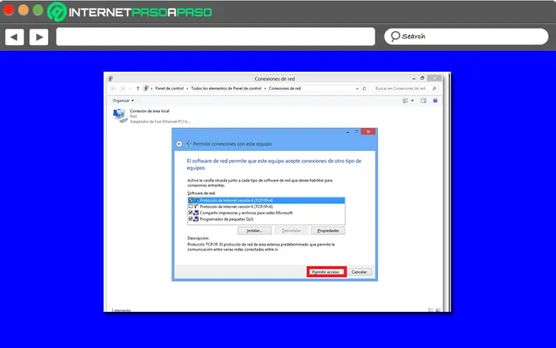 Ensuite, dans la fenêtre «Autoriser les connexions avec cet ordinateur» , vous devez laisser les cases par défaut et cliquer sur le bouton du bas qui indique «Autoriser l’accès» . Une fois que cela est fait, un nouvel écran s’affichera qui montre le nom de l’appareil à connecter et là, il ne reste plus qu’à appuyer sur le bouton «Fermer» en bas. Avec lequel, vous aurez configuré que votre PC Windows 8 prend en charge les connexions de type VPN.