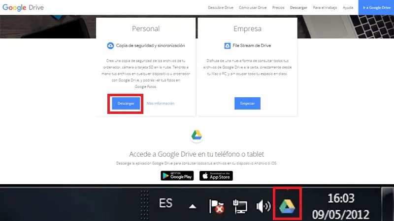 - Après avoir effectué l’installation précédente, vous verrez qu’un dossier avec le nom «Google Drive» apparaît sur votre disque dur , ainsi qu’une petite icône dans la partie inférieure droite de la barre des tâches. Les deux sont très utiles pour télécharger des fichiers sur le cloud, comme nous l’expliquerons maintenant.