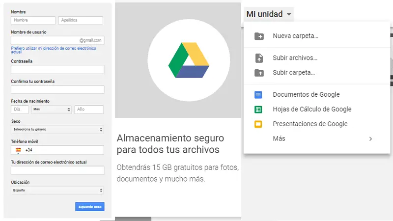 Une fois dans le site Web d’inscription, sur le côté droit, vous trouverez un petit formulaire avec une série de données essentielles à saisir . Tout d’abord, remplissez les champs de nom et prénom et votre nom d’utilisateur . Gardez à l’esprit que cela sera lié à un e-mail de Gmail , donc si vous en utilisez un que vous aviez précédemment, vous n’aurez pas besoin de suivre ces étapes car vous aurez tous les services Drive à votre disposition.