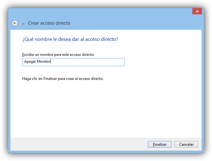 Nous continuons avec l’assistant et dans la fenêtre suivante, il nous demandera le nom du raccourci. Nous introduisons celui que nous voulons et finissons.