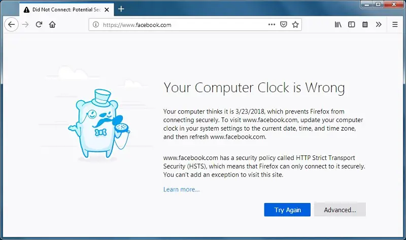 Pour savoir si ce qui précède est dû à une mauvaise mise à jour, il vous suffit de cliquer sur «Avancé». Les codes suivants ci-dessous sont ceux qui indiquent que la connexion n’était pas sécurisée par date et heure: