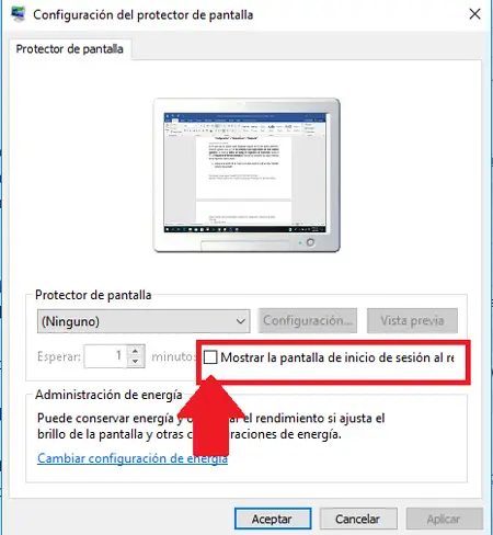 - Une fois connecté, une fenêtre apparaîtra dans laquelle vous effectuerez les étapes suivantes: La première chose à faire est d’activer la case «Afficher l’écran de connexion lors de la reprise».
