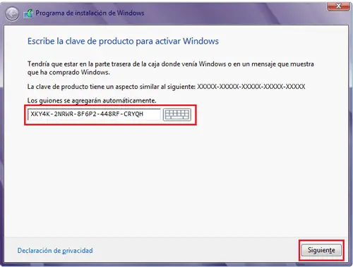 Après cela, Windows vous demandera automatiquement d’ entrer votre code de licence . Comme c’est le seul moyen d’avoir une version légale du système d’exploitation , vous devez l’avoir préalablement payé. Saisissez le code à 25 chiffres (sans saisir les tirets) et cliquez sur » Suivant «. Cette étape est obligatoire, donc si vous ne pouvez pas la faire, vous ne pourrez pas continuer.