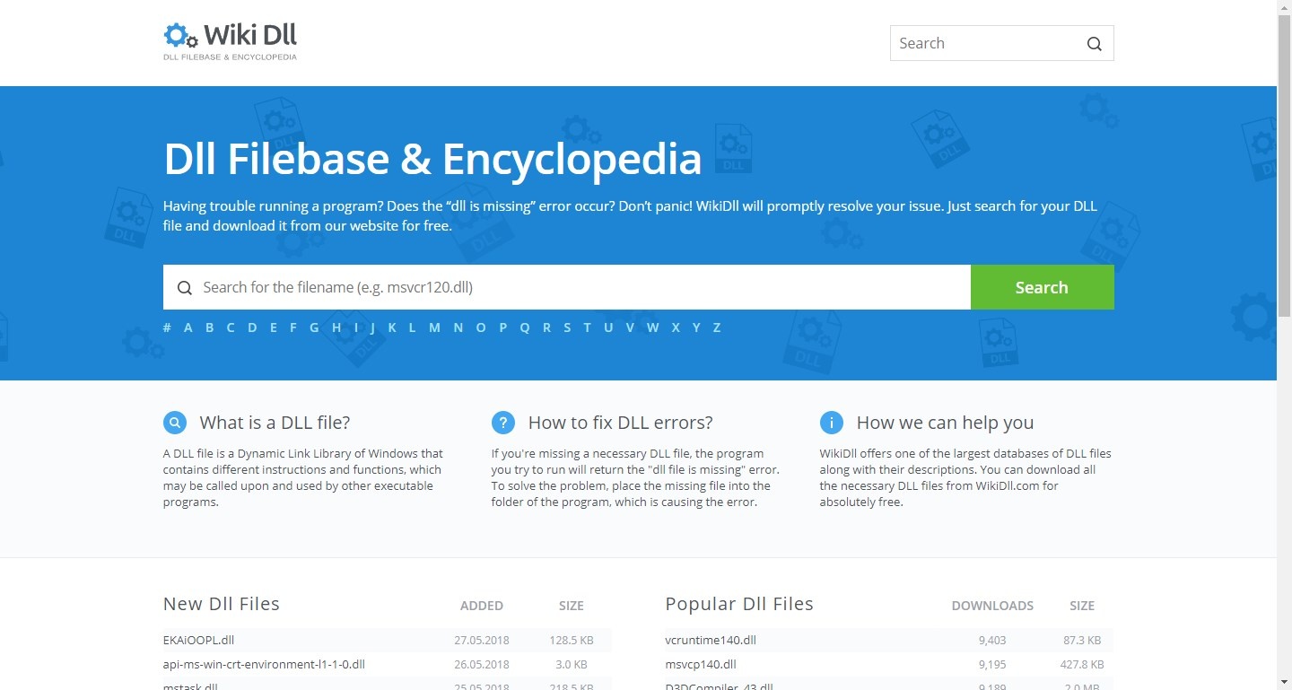 Une fois dans ce site Web, nous pouvons rechercher manuellement toute DLL dont nous avons besoin, à la fois par son nom à l’aide de son moteur de recherche et à partir de sa première lettre, si nous connaissons le nom spécifique. Nous pourrons également voir les derniers fichiers DLL qui ont été publiés sur la page, ainsi que les plus recherchés et téléchargés, au cas où nous aurions le même problème que quiconque.