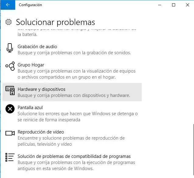 Et si nous n’obtenons toujours pas Windows 10 pour reconnaître le deuxième moniteur, nous pouvons utiliser l’ utilitaire de résolution des problèmes de matériel et de périphérique système. Pour ce faire, nous allons dans configuration> mise à jour et sécurité> Dépanner et lancer l’utilitaire de résolution des problèmes de matériel et de périphériques, qui détectera et corrigera automatiquement les problèmes avec les périphériques et le matériel.