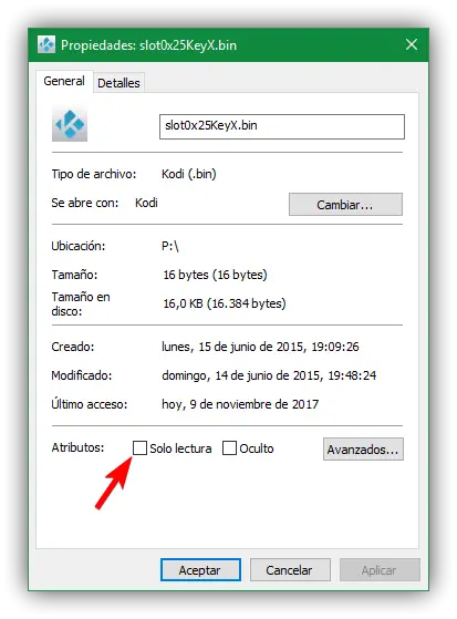 De même, nous devons regarder les attributs des fichiers et dossiers que nous avons enregistrés sur cette carte mémoire SD pour nous assurer que le mode «lecture seule» n’est pas activé, ce qui nous empêche de travailler avec ces fichiers ou d’enregistrer des données dans certains Dossiers.