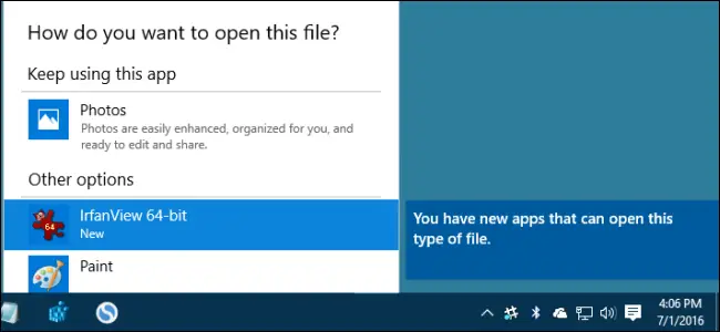 Évitez les notifications Windows pour ouvrir un fichier avec une application nouvellement installée