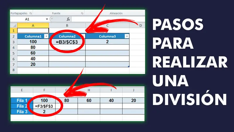 De même, lorsqu’il s’agit de diviser plusieurs chiffres en colonnes ou lignes par un entre le même nombre, il est nécessaire d’ajouter le signe «$» dans la formule , pour préciser que le nombre est absolu pour toutes les cellules . Si le nombre absolu est en C2 , vous devrez le diviser par la première valeur de la ligne ou de la colonne. Ainsi, la formule est exprimée comme ceci: = B2 $ C $ 2 .
