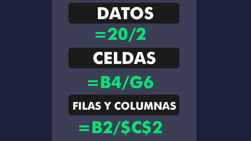 Toutes les formules mathématiques incluses dans Excel doivent commencer par un signe «égal» (=) . D’autre part, les divisions sont caractérisées en utilisant l’opérateur de division (/) . Par exemple, une division dans Excel est exprimée par «égal» , suivi du «numérateur», accompagné de «l’opérateur» et se termine par le «dénominateur» (= 20/2) . Pour obtenir le résultat, il vous suffit d’appuyer sur la touche «Entrée» .