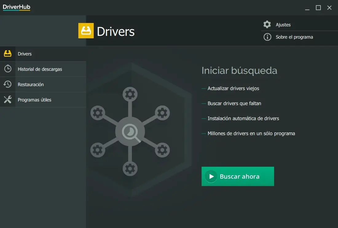 DriverHub est une application totalement gratuite pour Windows dont la fonction principale est de nous permettre de mettre à jour facilement les pilotes de notre ordinateur en un seul clic. Cette application se chargera d’analyser complètement notre ordinateur pour pouvoir identifier tous les composants matériels et comparera les versions des drivers, ou drivers, installés sur l’ordinateur pour savoir si nous avons la dernière version ou, sinon, nous sommes en utilisant une version ancienne.