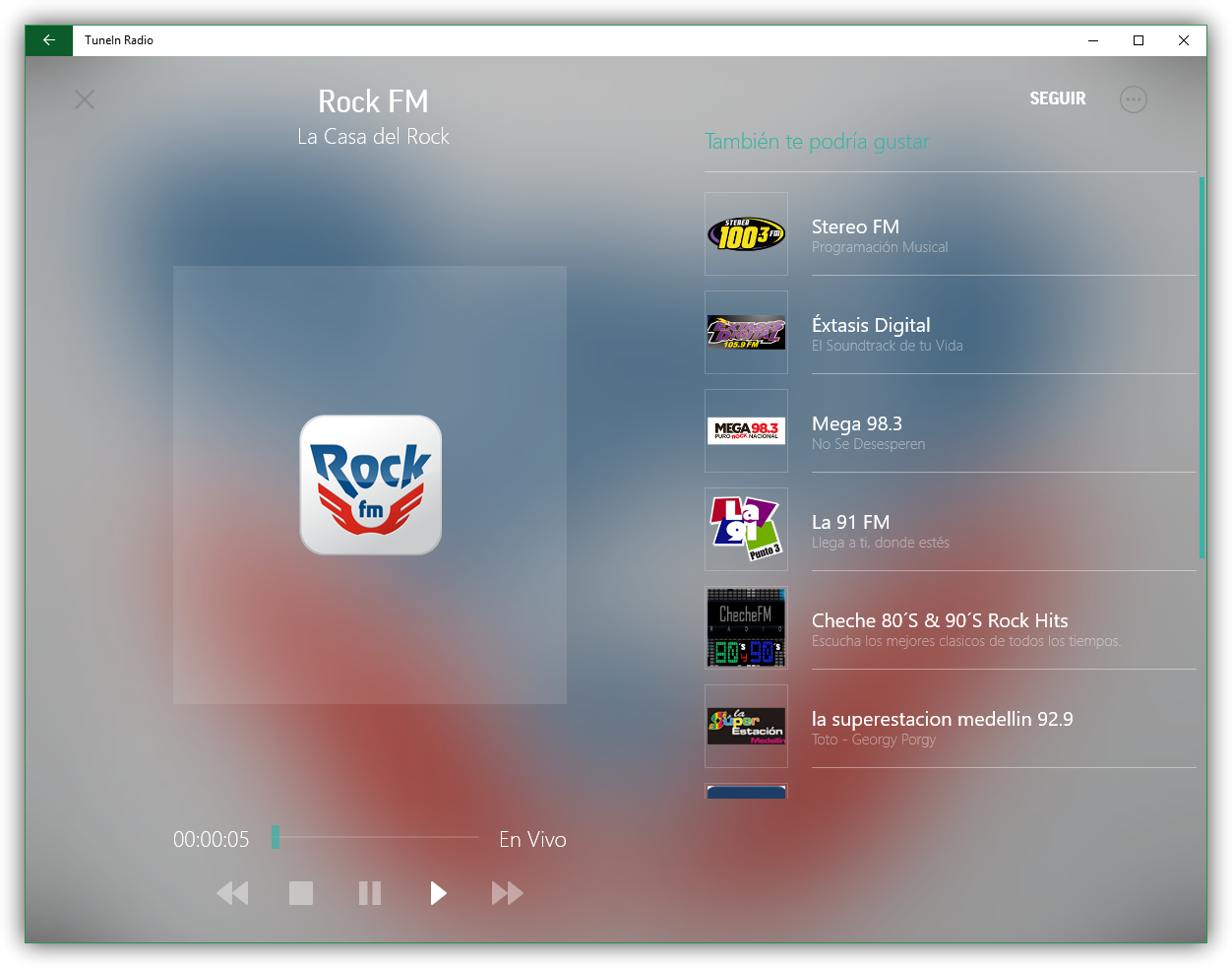 Une fois que nous avons trouvé la station que nous voulons écouter, nous cliquons simplement dessus et la lecture commencera.