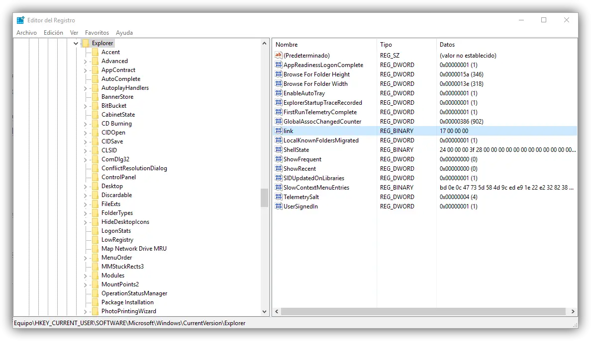- HKEY_CURRENT_USERSOFTWAREMicrosoftWindowsCurrentVersionExplorer