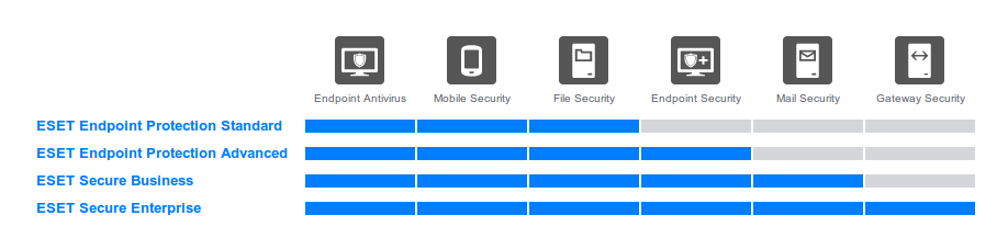 Les nouveaux produits ESET pour les entreprises seront divisés en 4 niveaux différents pour répondre au plus près aux besoins de chaque entreprise.
